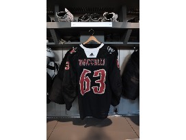 Pre-game worn Black Excellence jersey in size 56. This jersey was worn during warmups of the Coyotes vs. Blackhawks game on February 28th, 2023 and autographed by #63 Matias Maccelli.