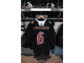 Pre-game issued Black Excellence jersey in size 56. This jersey was worn during warmups of the Coyotes vs. Blackhawks game on February 28th, 2023 and autographed by #6 Jakob Chychrun.