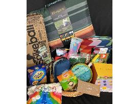 Spikeball, outdoor blankets, bocce ball, hammock, frisbee, throw and stick, bubbles, kite, outdoor goodies, and $100 to REI.