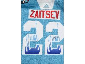 Autographed, Warm-up worn Nikita Zaitsev Authentic Chicago Birthday Jersey.