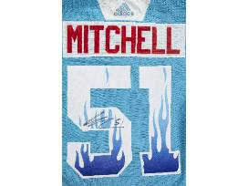 Autographed, Warm-up Ian Mitchell, Authentic Chicago Birthday Jersey.
