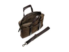 This handsome Shinola Men's Brakeman Canvas Briefcase is perfect for a day at the office or work on the go. Constructed in Italy of durable canvas with leather handles and adjustable strap, the briefcase is 11.5"h x 15.75"w x 2.5"d. Features include a double-zip closure, two exterior pockets, and padded interior computer compartment fitting a laptop of up 15".