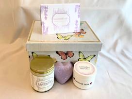 Share the gift of relaxation from Beloved Bath, a company that provides meaningful employment for people with autism. Our luxurious trio of lavender scented candle soap, and shea body butter are designed to help inspire relaxation and instill feelings of peace and calm. Donated by Lisa Strutzel.