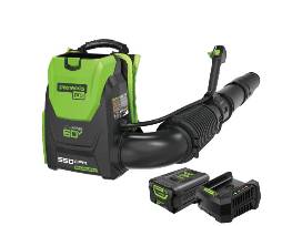 - The 60V 550 CFM Cordless Battery Backpack Blower includes a 5.0Ah Battery & Charger, delivers more power and performance than typical gas-powered blowers, without the noise, fumes, or harmful emissions and is ideal for yards up to 2/3 acre.