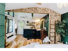 3 Night Getaway at The Carolina Treehouse, a place for dreamers to reset, reflect, and create. Designed with a 'slow' pace in mind. You will enjoy every part of your stay at the Carolina Treehouse; from enjoying your morning cup of pour over coffee to selecting your favorite record to play as the sun sets or curl up underneath on our swing bed that overlooks the private pond in this lodge-chic treehouse all while being surrounded by nature.