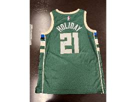 This auction item is for a signed Jrue Holiday Milwuakee Bucks Jersey from the Milwaukee Bucks. Comes complete with a certificate of authenticity.