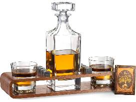 - Whiskey Stones Set decanter set with wood stand, bourbon decanter and scotch glasses, 8 granite whiskey stones
