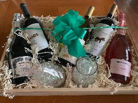 Thorpe's Wine & Spirits - gift basket, 5 bottles of wine & 2 glasses