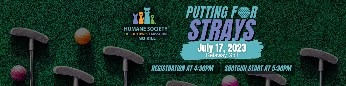 Cancellation must be done 15 days before date of tournament. Once your team fee has been paid, it will be considered a donation to the Humane Society of Southwest Missouri with no refunds issued. All players can pay here, or you can send in a check payable to the Humane Society of Southwest Missouri. Please write "Putting For Strays" in the memo of your check and mail to 3161 W. Norton Road, Springfield, MO 65803.