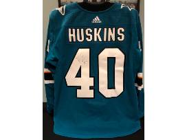 Teal Adidas Authentic Made In Canada San Jose Sharks #40 Kent Huskins Jersey Autographed by Former Shark Kent Huskins