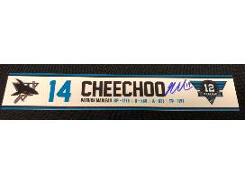#14 Cheechoo Legends Game Locker Nameplate Autographed by Former Shark Jonathan Cheechoo