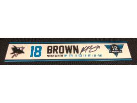 #18 Mike Brown Legends Game Locker Nameplate Autographed by Former Shark Mike Brown