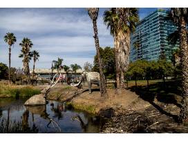 The La Brea Tar Pits is an active paleontological research site in urban Los Angeles. Hancock Park was formed around a group of tar pits where natural asphalt has seeped up from the ground for tens of thousands of years. Over many centuries, the bones of trapped animals have been preserved.