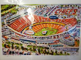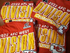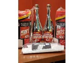 We are the champions! Commemorate the Chiefs recent Super Bowl win with this package, including: two (2) bottles of Mano's 2022 Chiefs World Championship Trophy Chrome Bubbly, two (2) Chiefs blankets, two (2) Chiefs pennants, a giclee print of the Chiefs at Arrowhead on archival paper signed by Mike Savage, and four (4) Kansas City Chiefs 2022 AFC West Division Champions t-shirts (S, M, L, XL).