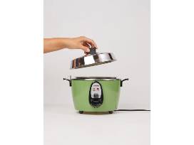 This is a Tatung Stainless Steel 6-Cup Electric Rice Cooker and Steamer in Traditional Green.