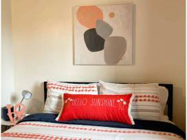 - Two bedrooms (one w/ king size bed, one w/ queen bed & two single beds) w/ full bath (located upstairs).