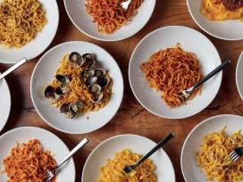Our pasta is handmade in our kitchen in Bologna, Italy by "sfoglina" who use traditional methods of sheeting and cutting - none of our pasta is extruded. It's prepared fresh daily, using a type of egg that's available only in Italy and is specially produced for pasta. The result is a superior noodle that is the foundation for our classic Italian dishes.
