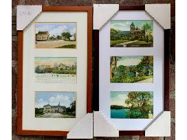Two framed panels of antique postcard prints from the town of Easton MA. Featuring six unique images including the Ames Estate and Library, these framed panels measure 11" x 19 1/2". Great for the home or as a gift.