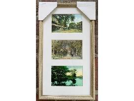 A framed panel of antique postcard prints from the town of Rockland MA. Featuring three unique images including Union Street and Reed's Pond these framed panels measure 11" x 19 1/2". Great for the home or as a gift.
