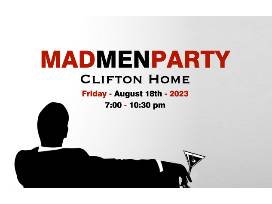 Take a step back in time with Frank Sinatra on the hi-fi record player while sipping on an Old Fashioned cocktail. The Cliftons will be hosting a Mad Men Party in their 1965 mid-century home on Friday, August 18, 2023. Heavy hors d'oeuvres (many classic dishes), classic cocktails (vodka gimlets, dirty martinis and more) and cigars on the patio provided. Attire from the time period is highly encouraged... skinny ties welcome. All proceeds benefit LFOLA, so sign up for this blast from the past celebration!