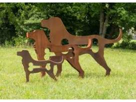 Make a bold artistic statement with American Dog by renowned metal sculptor Dale Rogers. Measuring 3 feet high, 4 feet wide, and 4 inches deep, this striking piece showcases Rogers' signature style of clean lines and powerful simplicity. Crafted from high-quality metal with a sleek finish, the sculpture embodies strength, loyalty, and the spirit of the American canine.