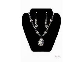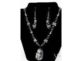 Show off your love for feline friends with this charming handcrafted necklace and earring set featuring a delightful cat pendant. The necklace is adorned with green tiger eye and amazonite stones, accented by whimsical silver fish and butterfly beads for a playful, nature-inspired touch. Measuring 20 inches with an extender to 23 inches, it pairs beautifully with the matching earrings to complete the look. Each detail reflects artistry, warmth, and a touch of sparkle, making it perfect for any cat lover or jewelry enthusiast.