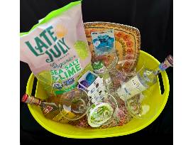 Bring the spirit of a fiesta to life with this vibrant celebration of tequila! Enjoy bottles of Ocho Tequila Plata and Jose Cuervo Especial Gold, perfect for crafting your favorite cocktails. A $100 Visa gift card lets you stock up on extra treats or plan your next get-together. The hand-painted platter, six margarita glasses, and six shot glasses make every pour feel special. Complete the spread with sea salt and lime tortilla chips and Herdez mild guacamole salsa, all beautifully arranged in a large festive tub. It's the ultimate party starter that blends good taste, laughter, and the joy of helping rescued pets find their happy ending.