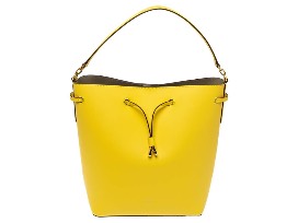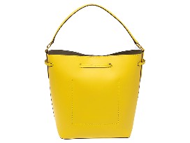 Ralph Lauren super smooth yellow leather drawstring bucket bag with magnetic fastener and inside slip pocket.