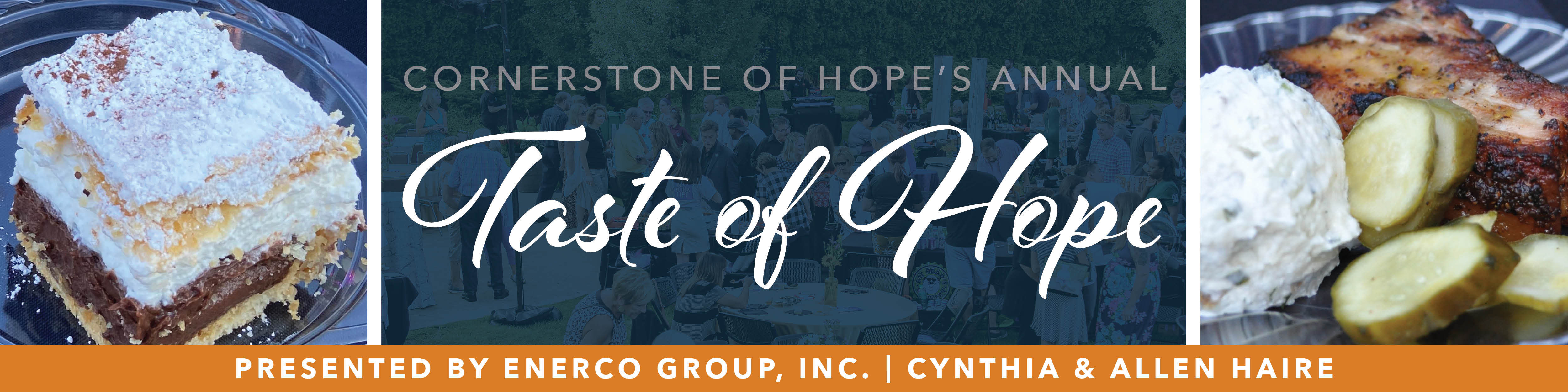 Cornerstone of Hope will host its Annual Taste of Hope Presented by Enerco Group, Inc. | Cynthia and Allen Haire on Thursday, September 7, 2023 on the beautiful grounds of Cornerstone of Hope. The casual evening showcases a spectacular sampling of food and drink from local restaurants, entertainment and raffles.