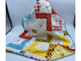 - Handmade, one-of-a-kind, sunflower-themed baby quilt with super soft fleece backing, 46" x 46"