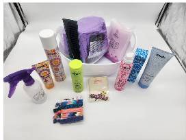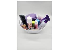 During these Kansas hot summer nights, gals can still look "hot" with this basket full of Amika styling aids. Add a pop of color to your bath routine with the Abode multi-color bath accessory set containing a wrap towel, spa headband and coordinating carry tote. This feel-good package includes a variety of Amika hairsprays, shampoos, and creams, and a spray bottle, wrap towel and hair ties.
