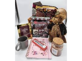 The centerpiece of this basket is a lovely Bearington Collection Bear on a stand - she is dolled up in her autumn finest. You'll be ready to get cozy this fall thanks to this basket, which includes: