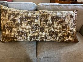 Celebrate the Sunflower State with this one-of-a-kind, handmade Kansas Home Bench Pillow, which features a design that celebrates the cities of Kansas as well as our state flower. The back is covered in a brown and white forest print with snap closures.