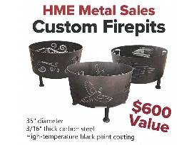 HME Metal Sales stands ready to create a customized firepit in the design of your choice! It'll measure 35" in diameter and be made from 3/16" thick carbon steel with high-temperature black paint coating.