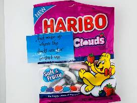 - "and wake up where the clouds are far behind me" Haribo soft & fruit cloud chew candies