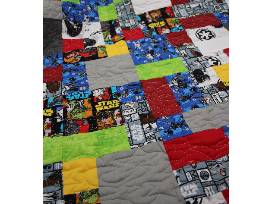 - One-of-a-Kind, Machine-Pieced & Quilted Star Wars Mini Quilt with Red Minky Backing, 43" x 35" - nothing is better than minky fabric for warmth & cuddling.