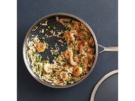 This innovative pan from Pampered Chef combines the best features of stainless steel and nonstick cookware. The nonstick mesh coating provides the perfect sear (without the mess) and leaves fond for pan sauces and gravy. The size is perfect for one-pot meals.