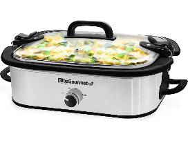 Prep meals in advance or bring on the go, the Elite Gourmet 3.5 Qt. Stainless Steel Casserole Slow Cooker makes entertaining a breeze. Its 9" x 13" removable rectangular stoneware is perfectly shaped and sized for casseroles, lasagnas, desserts and other potluck dishes.