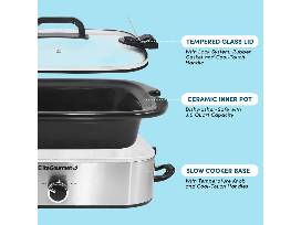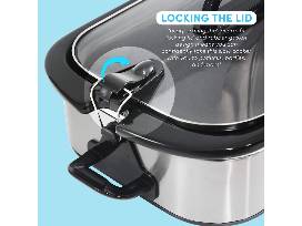 The oven-safe stoneware pan lets you go from the slow cooker to the oven and then directly to the dining table. The slow cooker has a locking lid design and oversized handles for easy transport, preventing messy spills when bringing dishes for potlucks and other gatherings.