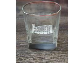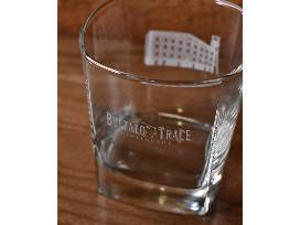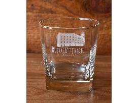 - Pair of Buffalo Trace Square Rocks Glasses, 12 oz. - each has a heavy bottom and displays the iconic Warehouse C and Water Tower on one side and Buffalo Trace Distillery logo on the other