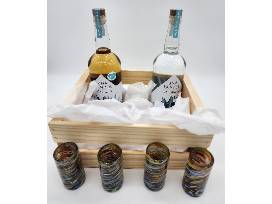 This Tequila Twister Basket will have you dancing in the rain once the storm has passed! It includes bottles of Una Familia Blanco & Una Familia Reposado Tequilas, each 750 ml., and four handmade tequila shooter glasses.