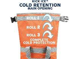 The KICK ICE cooler is the ONLY soft cooler on the market that won't tip or spill! The Travelflex molded base keeps your stuff upright, balanced, and in place! Plus, the Rolltop closure and snap keeps things leakproof.