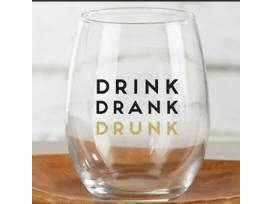 Wines this unique deserve a special glass like this set of 4 "Drink Drank Drunk" stemless wine glasses!