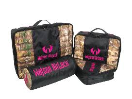 Your bundle includes a Pink Camo Carrier Featuring 5928 cubic inches of water resistant scent free storage for your hunting clothes, an integrated double layer changing mat for in-field use, a front organizer pouch for your bow-hunting accessories and an isolated rear pouch for your whitetail deer hunting cover scents, lures and attractants. SIZE: 26L x 19H x 12D,