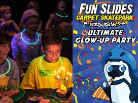 Ultimate Glow Up Party for 12 at Fun Slides Carpet Skatepark in the North Hills!