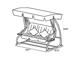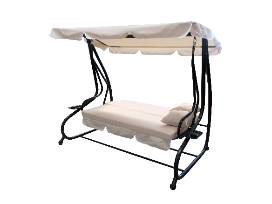 This 3-seated outdoor patio canopy swing is the perfect addition to your summer home. It is made to seat three average-sized people comfortably. Fully reclinable into a daybed gives you maximum comfort outdoors. Seated or reclined, this porch swing will aid you in relaxation. A durable, powder-coated steel frame provides long-lasting stability. The canopy top comes in a beige color along with matching cushions and pillows. Also built with two cup holders for your convenience. Giving up to 90% UV ray protection, keeping you safe from harmful sun rays while you find comfort. Easily adjustable. Weight capacity: 750 pounds.