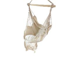 This simple, suspended seat has a cocoon-like embrace to make snuggling, reading, listening to music, and other leisure activities a more enjoyable experience. Handcrafted from soft and durable polyester cotton ropes. A sturdy wood spreader bar stabilizes the swing and lets it support upwards of 440 lbs of weight. The strategic oversized design ensures there is enough space for optimal relaxation. Conveniently located on the side of the swing is a side pocket for storage. Store your phone, tablet, book, magazine, drink, or more. Designed with portability in mind, this swing can easily be relocated anywhere. Attach this swing to a branch, beam, or hammock stand for easy setup. Suitable for both indoor and outdoor spaces. Enjoy this swing in the bedroom, on the patio, balcony, in the yard, garden, park, or more.