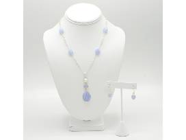 Blue Lace Agate and Sterling Silver Necklace and Earrings Set.