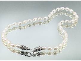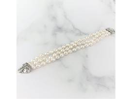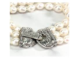 1Three Piece Freshwater Pearl Set: 18" Necklace, three-strand pearl bracelet and matching earrings. All with Sterling Silver clasps.