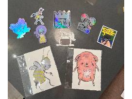 An array of prints and embroidered work from local artists, Ryan and Shelbi Reynolds.
